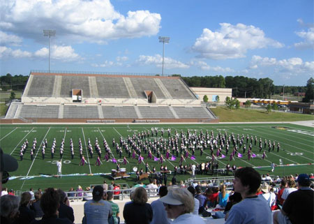 Andy and Megan's band (Andy is in white on the 30-yard line)