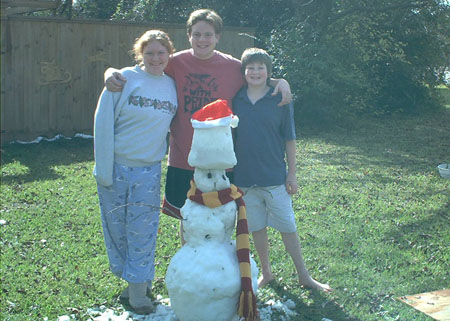 That brings us to Christmas, which seemed to come and go quickly, as did the entire year. Patty had to work long hours right up until Christmas, but we did have a nice Christmas Eve celebration with the Ewerts in Galveston. Then, as we drove back to Clear Lake for midnight mass, it began to snow! After church when we got home, we had to play in it for a while since this was the first Christmas snow of our lives. In the morning we had a nice time opening presents at home, made another snowman and then headed to Galveston for the Bohn family gathering. They had 5� of snow compared to 1� at our house. We had a wonderful, white Christmas!
