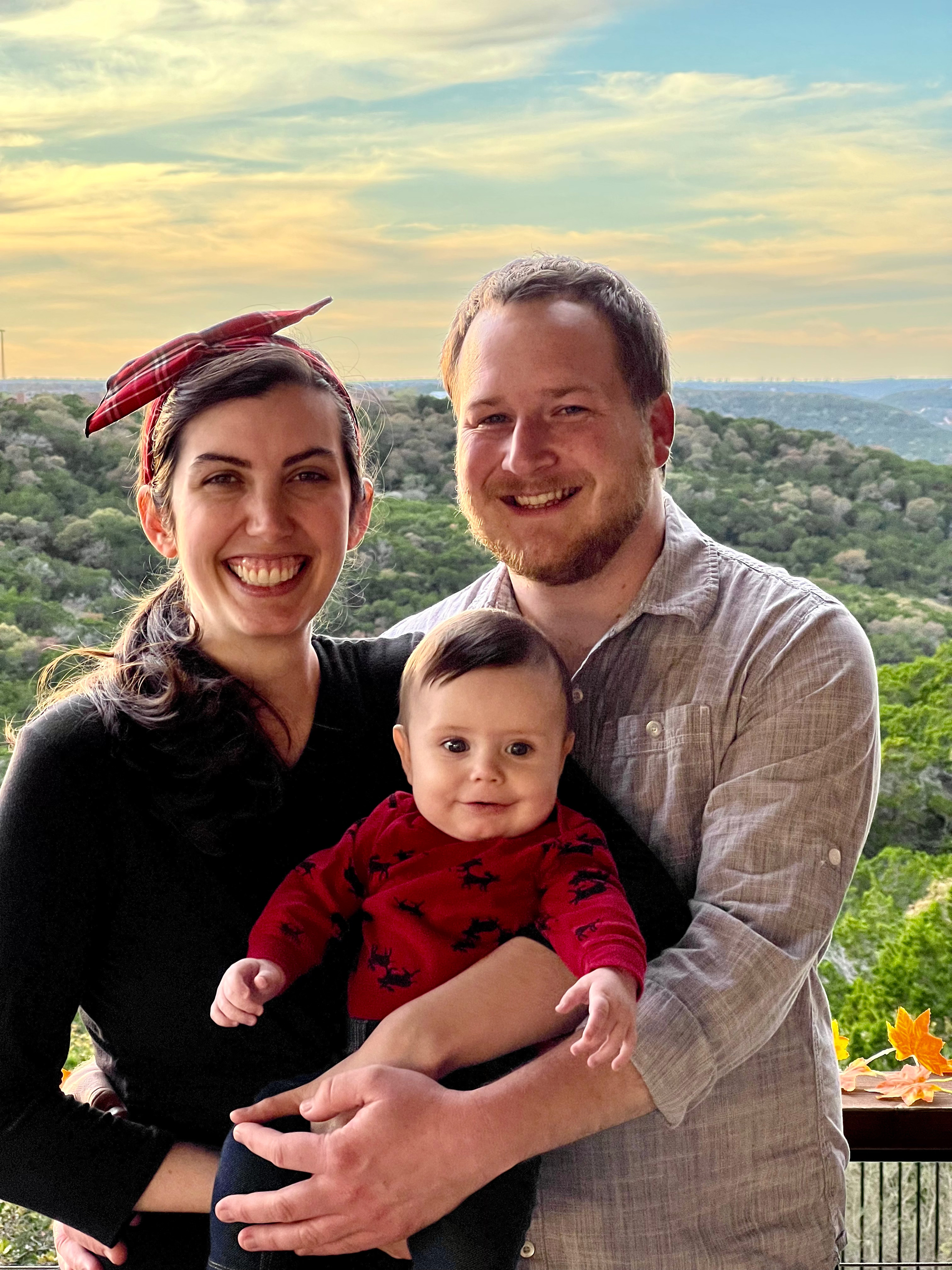 That's right, a new addition! - August Jasper Ewert, aka AJ, was this summer's blessing. Currently at 6 months old, he has reached the delightful giggling phase. Allen was promoted to Director of Engineering at Adaptive 3D in Plano. Kathy is back to work as a sign language interpreter, and actively signing to AJ, hoping he will grow to be bilingual. This fall, while working on a relatively simple window replacement, they found old (not active) termite damage in their home which necessitated an unexpected tear-out and rebuild of a huge section of their back wall. Between new baby, home renovations, puppy back injury, and a variety of illnesses, they have been pretty exhausted these last few months, but their perseverance and love for each other continues to inspire us! P.S. - They celebrated their 5th anniversary this year!