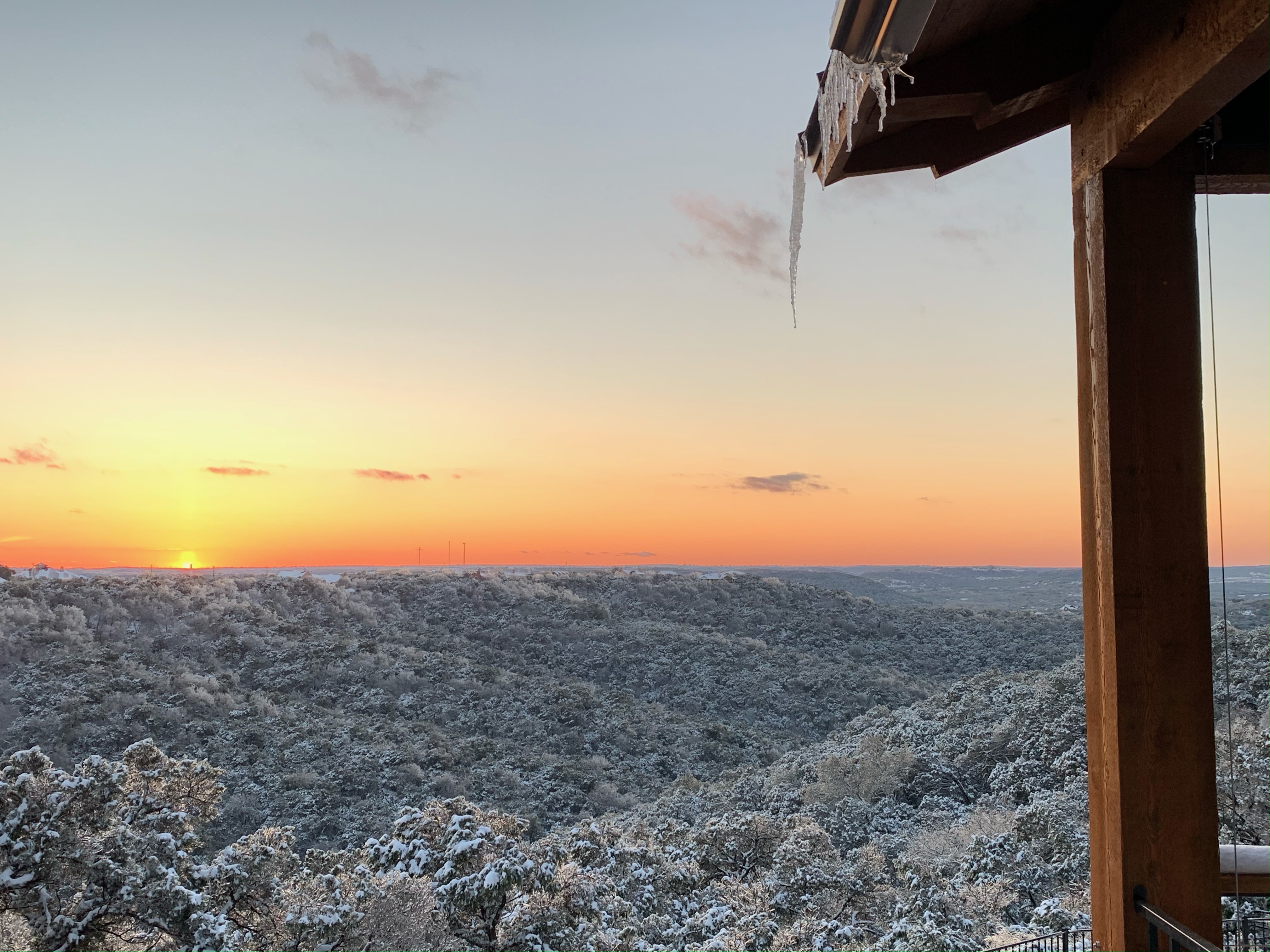 We mentioned in last year's letter, that we enjoyed a White "Christmas" because it snowed in Austin during our rescheduled celebration in January. So fun! However, the Snovid / Snowmeggedon / Ice-pocalypse that followed in February, was not so much fun! And being a life-long renewable energy advocate and expert, Mike is here to tell you that wind and solar energy did NOT cause the failure of the Texas power grid. Mike deserves major kudos for MacGyver-ing our pool equipment after the freeze damage, because we are still on a wait list for repairs. Luckily that was our only significant damage. And there is no denying that although our frozen corner of the world was uncomfortably cold for a little while, it was also incredibly beautiful. The ice-encased trees just glittered in the sun, and most of them survived. We hope all of you who were likewise affected came out mostly unscathed, and that we never see a storm of that magnitude again.